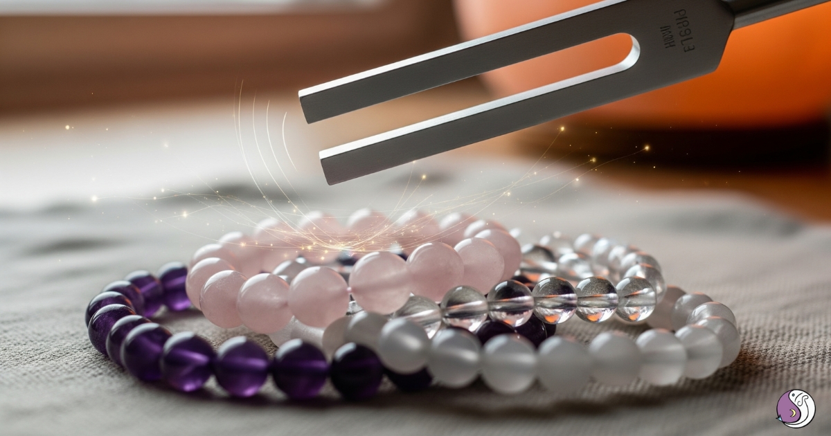 透過頌缽聲、音叉、鈴聲或自己唱頌 OM 音,讓聲波進入水晶內部共振。這不僅清理,也提升水晶頻率,非常適合靈性能量較高的水晶。